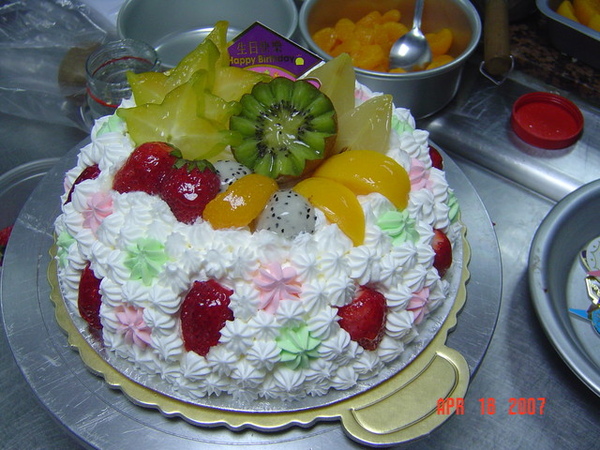 這是我學蛋糕裝飾中,算是簡單的一個,是個看起來很熱鬧的蛋糕!<br/> <img src="http://pic.pimg.tw/rubywang9966/4a41dcf6b89f4.jpg" alt=""/>