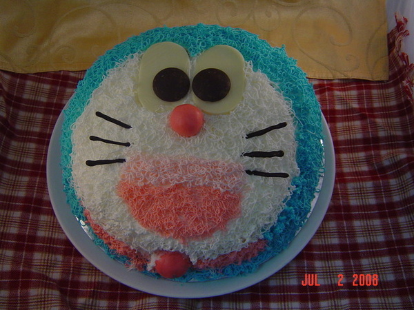 裡面夾的餡料是我喜歡的芋泥&布丁ㄟ,這個蛋糕不難,只是在擠線條的時候要注意,首先要把記號作明確,什麼顏色的線要擠哪記號要做清楚,還有擠出來的線條要細不可太粗,太粗會讓蛋糕的質感不好!蛋糕體一定要填滿不要露出白白的部分喔!