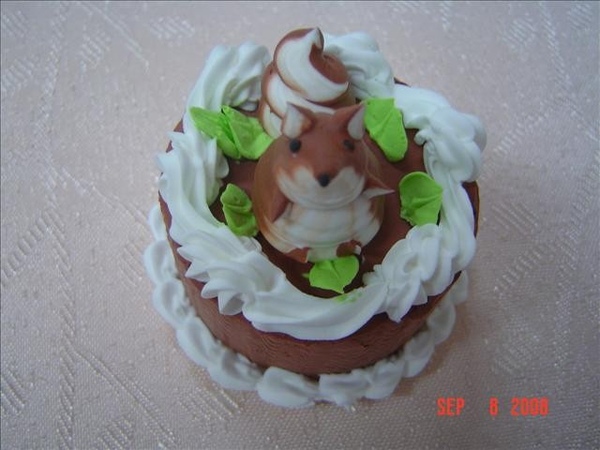 這不是蛋糕喔! 放大照片看清楚 粉漂亮吧!這個東西是何老師去上課學的,不知用甚麼做的,(我忘記了),大小約一般8吋蛋糕的1/10,很小很可愛,何老師做了好幾個樣子喔! 小松鼠很可愛吧! 大家看完之後都很喜歡,於是希望何老師也可以開一堂教這個的課!