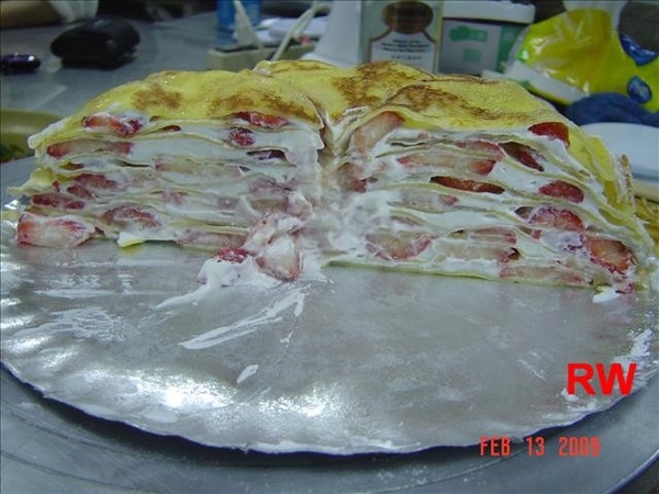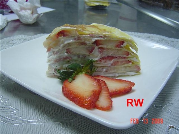 這個草莓千層真的粉好吃,煎的軟軟香香的蛋皮加上酸酸甜甜的草莓,味道很合~如果遇到沒有草莓的季節,可改為水蜜桃or奇異果也是不錯的選擇喔!