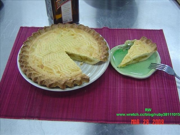 用,然後,做甜派皮,所有材料混合在一起輕揉,避免把麵糰揉出筋,鬆弛20分鐘左右,再放進模型中整形,加入冷卻的蘋果餡,表面在蓋上派皮,入爐烘烤