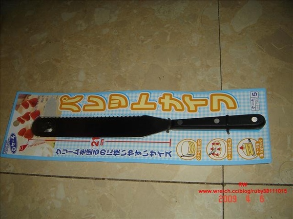 還有那個抹刀,想說不知道好不好用?一面可以切蛋糕,用鋸齒刮出花紋,一面可以抹蛋糕,感覺上好像很好用,明天來試試看好了