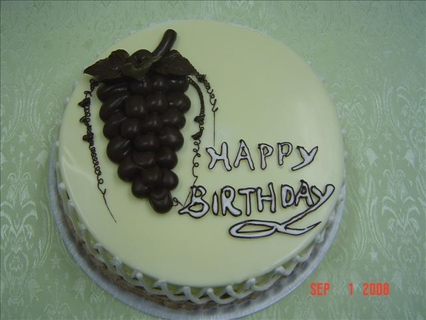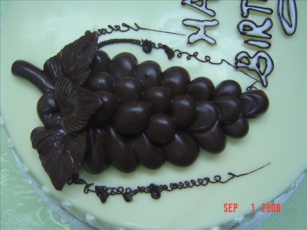 2葡萄成熟時:用白巧克力做淋面,用黑巧克力擠出葡萄結實累累的感覺,邊邊擠出漂亮的花樣 !